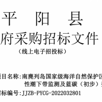 南麂列島國(guó)家級(jí)海洋自然保護(hù)區(qū)生物多樣性潮下帶監(jiān)測(cè)及藍(lán)碳(初步)數(shù)字平臺(tái)的公開招標(biāo)
